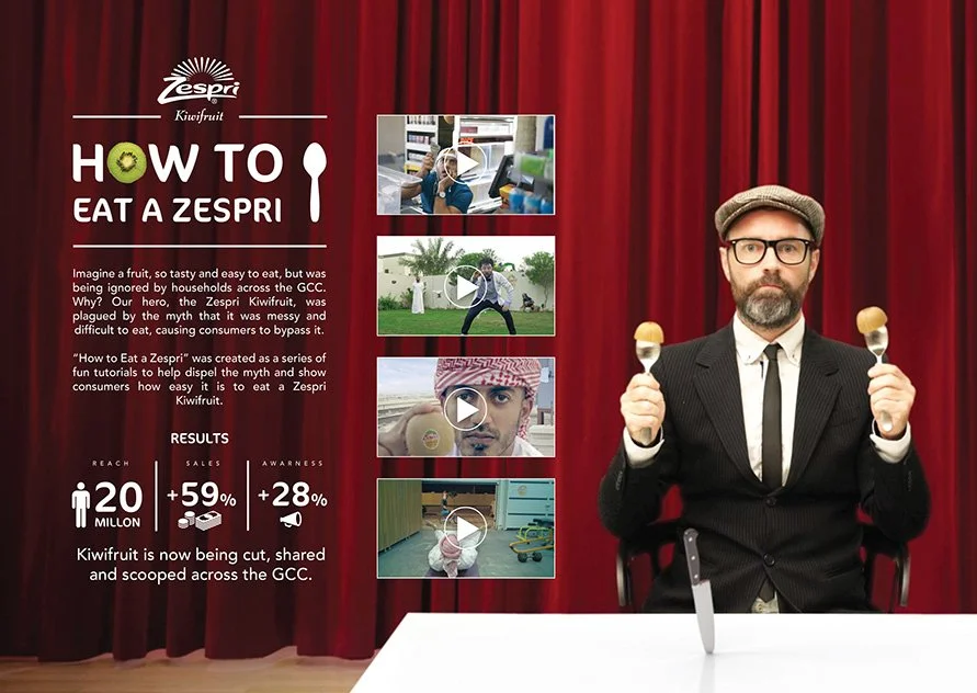 From that insight, the idea for “How to Eat a Zespri” was born. The campaign took the form of a series of playful tutorial-style videos demonstrating different ways to enjoy a kiwi fruit. Each execution focused on a simple action.